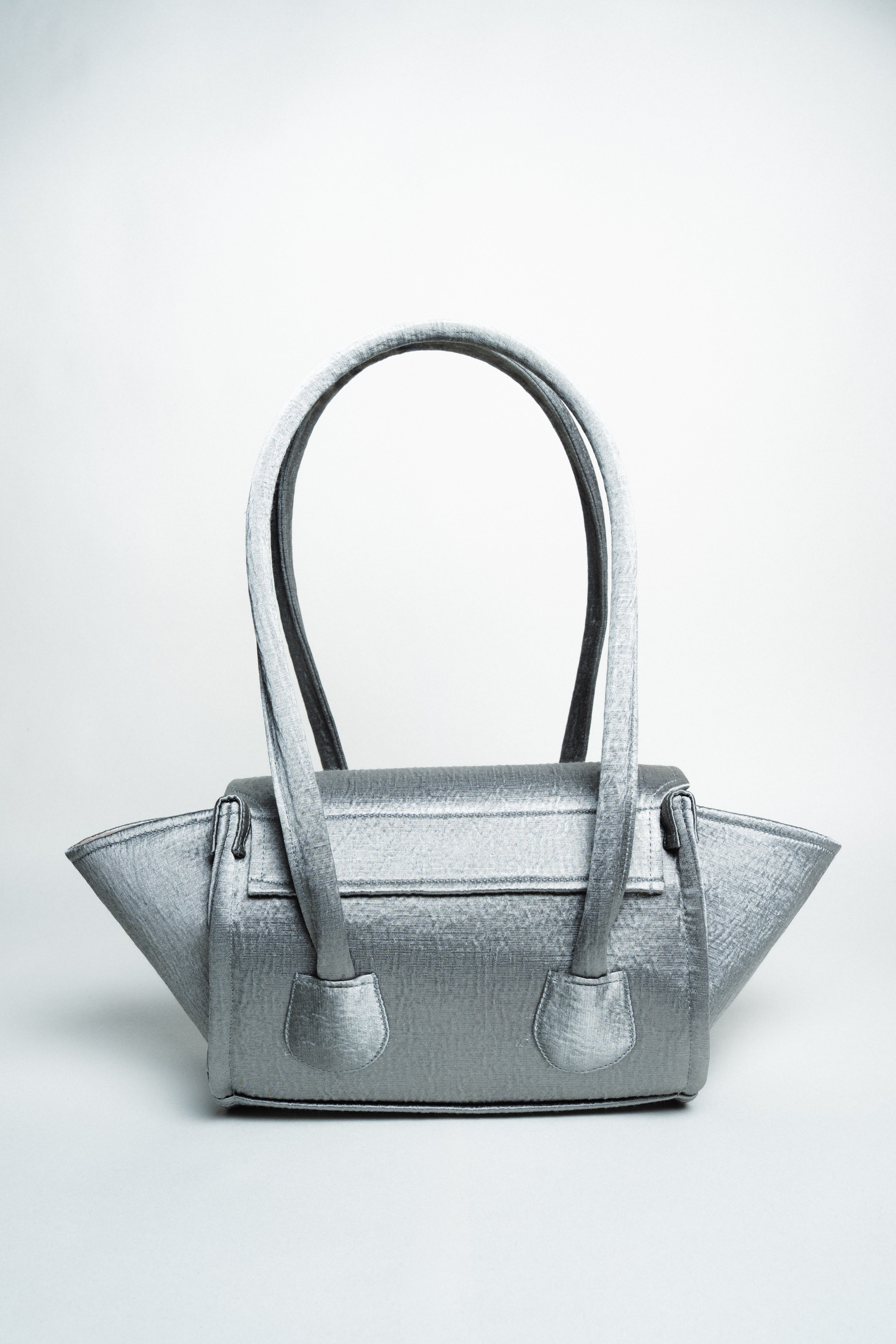 Float through your evenings with the Glint Boat in Silver. Inspired by the tranquil shimmer of a pearl river, its satin structure catches the light with subtle brilliance, making it the perfect companion for both day and night. The long handles allow effortless shoulder carry, while its boat-shaped silhouette elevates every outfit with understated elegance and refined charm.